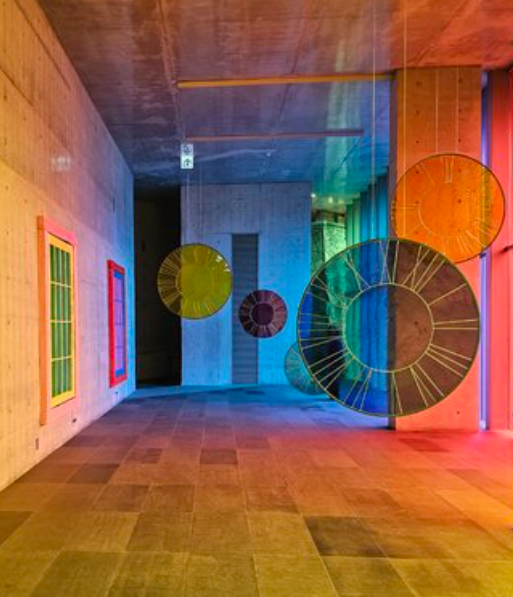5. 작품 <첫사랑>: 큰 창으로부터의 빛이 작품의 다양한 색으로 들어오는 그 공간부터 작품 밖, 작품 공간 밖 세계와 안의 세계가 다른 세계가 됩니다. 멈춰진 다양한 색의 시간에서 즐겁게 다정하게 그리고 따뜻하게 추억(& 사진의 추억)을 함께 남길 수 있습니다.