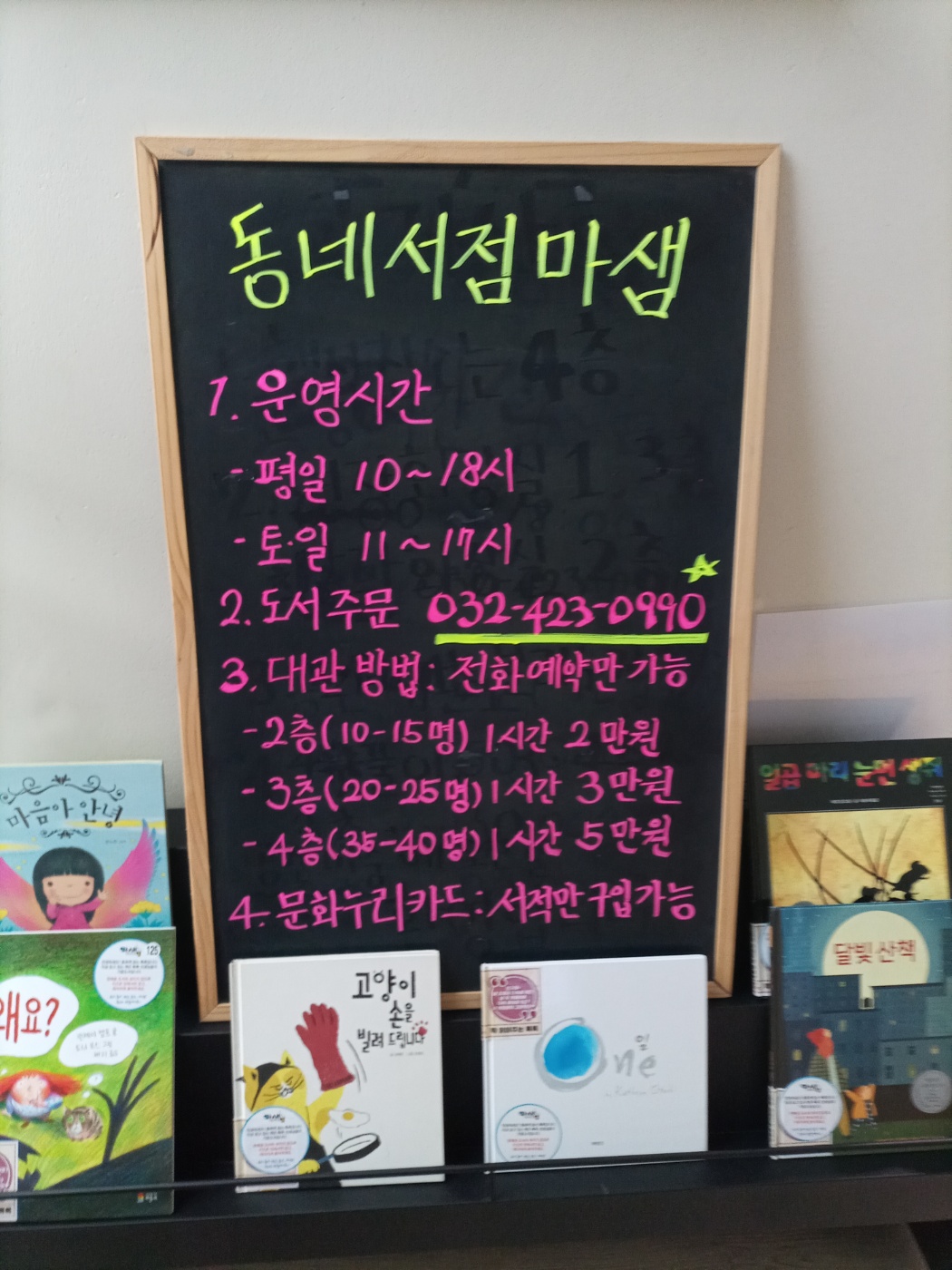* 주소: 인천 남동구 장아산로174번길 15 (1층: 서점카페, 2층: 서점, 3,4층: 세미나실)