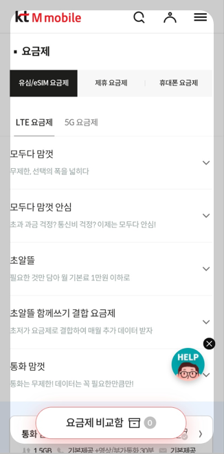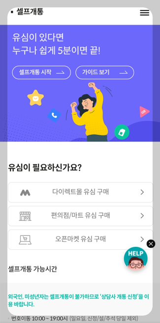 유심을 구매하고 나면, 셀프 개통 페이지에 들어가서 요금제를 정하고, 개통을 합니다.