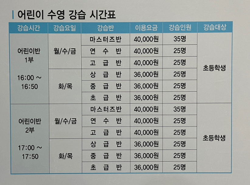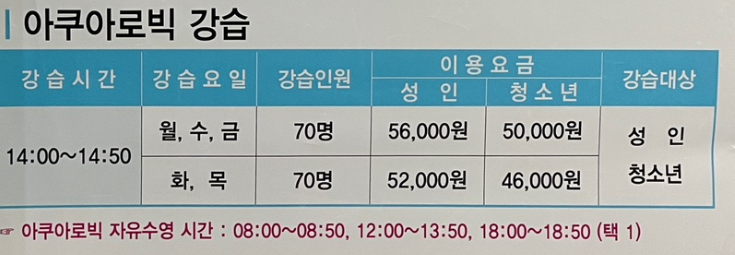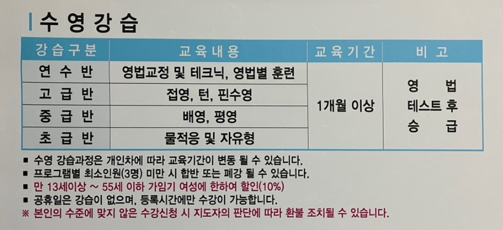 열우물경기장 내 수영장 이용 방법(강습정보, 자유수영 이용방법)