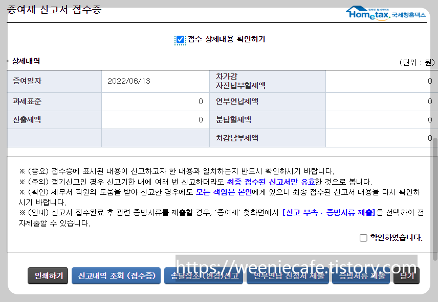 처음에는 너무 어려워보이고, 그리고 잘못하면 어쩌나 하는 걱정이 되기도 했는데, 처음이어서 생소하여 시간이 걸려서 그렇지 천천히 입력을 하다보니, 증여세 신고를 완성할 수 있었습니다. 처음하니까 실수해도 괜찮다고(실수하면 다시 하면 됩니다^^) 마음먹고 천천히 진행하면, 신고가 끝났을 때 다음번에는 더 쉽게 할 수 있겠구나 하는 생각을 하게 됩니다.