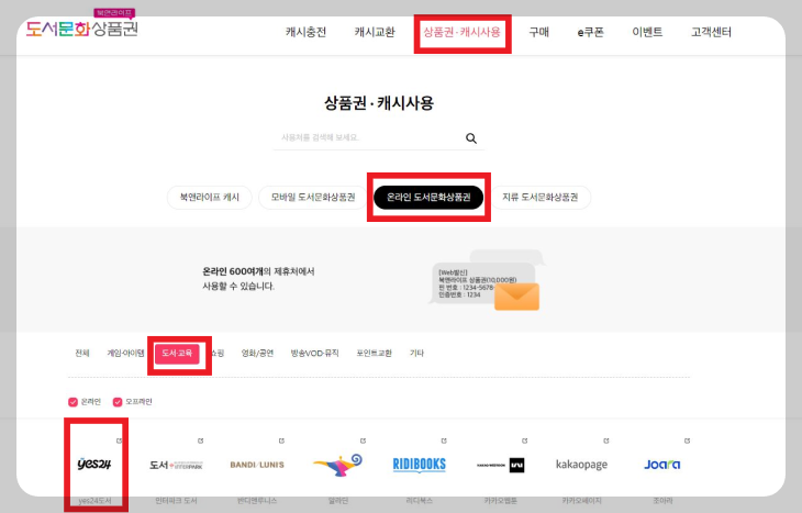 우선, 도서상품권을 'e-쿠폰'으로 교환하는 작업이 필요합니다.