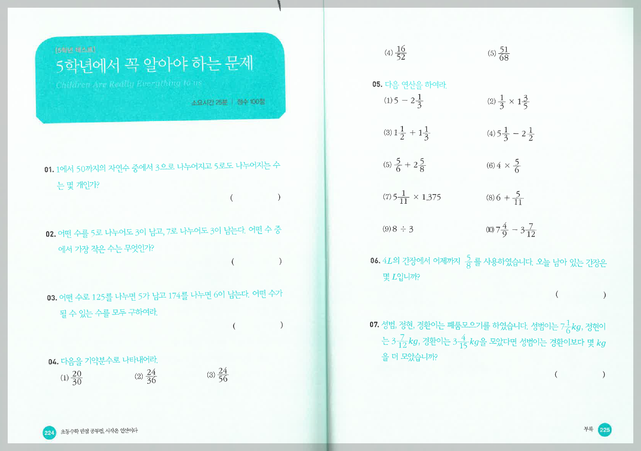 5학년에서 꼭 알아야 하는 문제