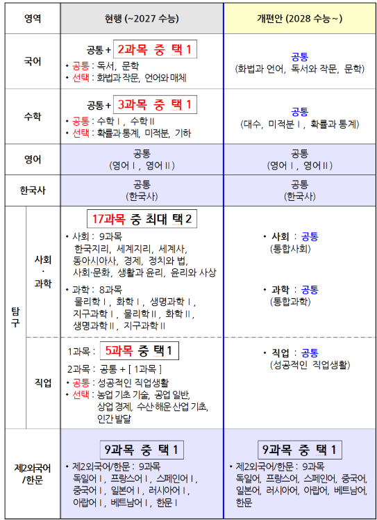 3. 그 외, 교육부는 2028 수능 개편에 따른 통합사회와 통합과학 예시 문항을 내년 중 개발해 공개할 계획이라고 합니다.